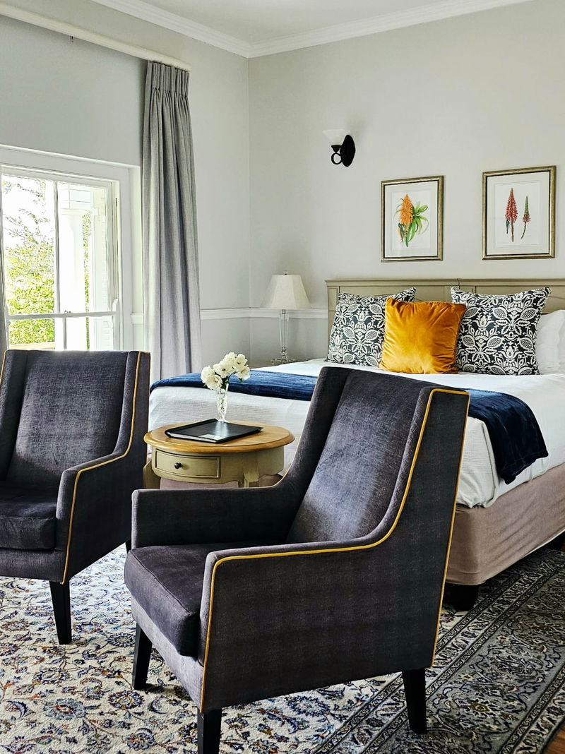 Located in the newer west wing, our three Luxury Rooms offer a calm, elegant retreat framed by views of the olive grove and Langeberg Mountains. Each space is designed for comfort and quiet indulgence — airy, light-filled, and thoughtfully appointed.